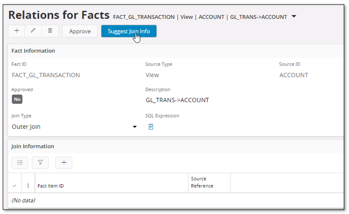 - If the source type is Dimension, Fact, View, IAL View or Table