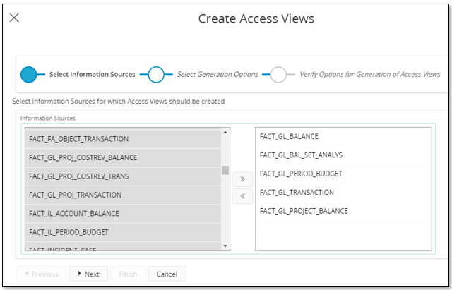 The following Access Views are used by Analysis Models in Applications 10. The column Referenced Information Source in the below tables can be used when generating Access Views from the Information Source feature in Solution Manager.