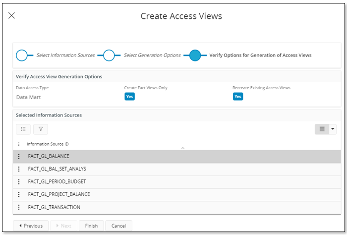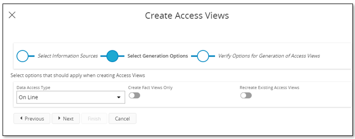 Note: It is recommended to use Data Mart access in those cases where incremental load has been implemented. This means that Access Views should be created based on Data Mart access where applicable.